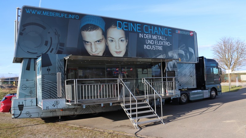 Am 03. und 04. Februar 2026 gab es für die 8. und 9. Klassen an unserer Schule ein besonderes Highlight für die Berufsorientierung: Der M&E-Truck der Metall- und Elektro-Industrie war zu Gast, um uns bei der Berufsorientierung einen Beispielsweg aufzuzeigen.
