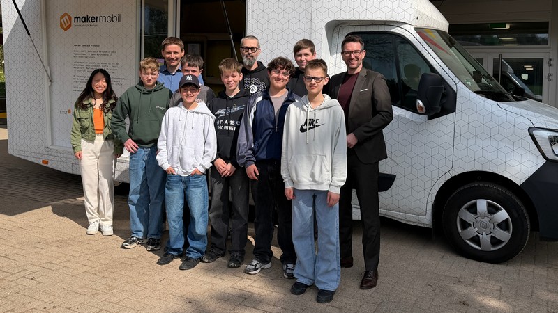 Am 15. und 16. April 2026 machte das MakerMobil des Landesmedienzentrums Baden-Württemberg Station an der Realschule Karlsbad. Als erste Schule im Landkreis erhielten ausgewählte Schülerinnen und Schüler, die die Zusatzausbildung Media-Peers erwerben, die Möglichkeit, dieses innovative Angebot zu nutzen.